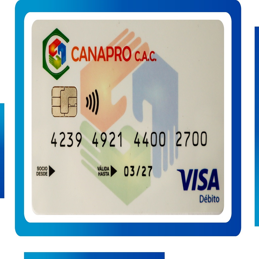 La tarjeta débito es un documento personal e intransferible, de propiedad y expedida por CANAPRO C.A.C., a los titulares de la cuenta CANAPRO DIARIO; para el manejo de los recursos de la cuenta de ahorros, el cual permite al asociado realizar transacciones financieras y acceder a diferentes servicios en cajeros automáticos a nivel nacional e internacional.